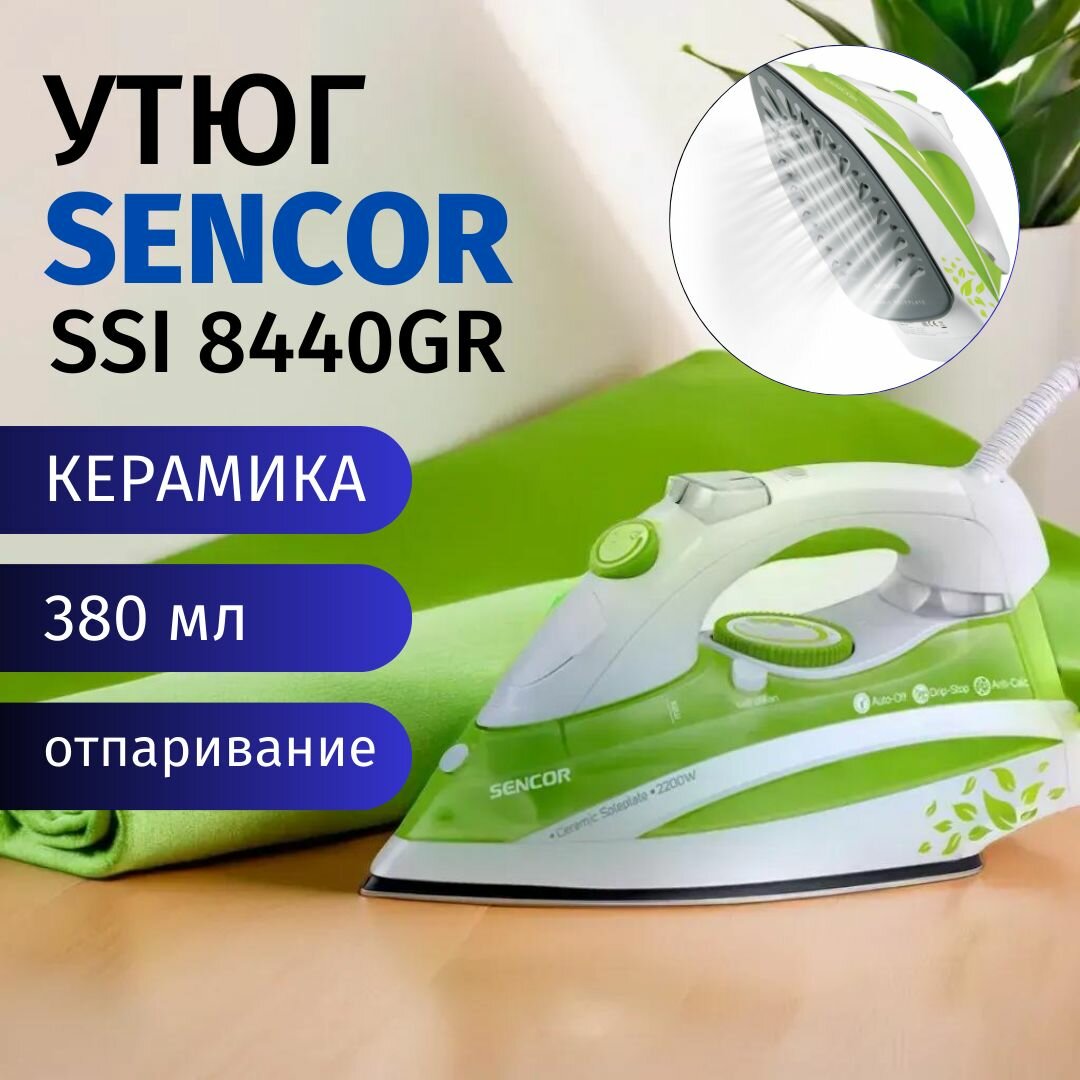 Утюг Sencor SSI 8440GR белый, зеленый