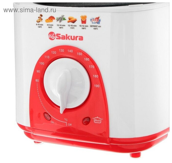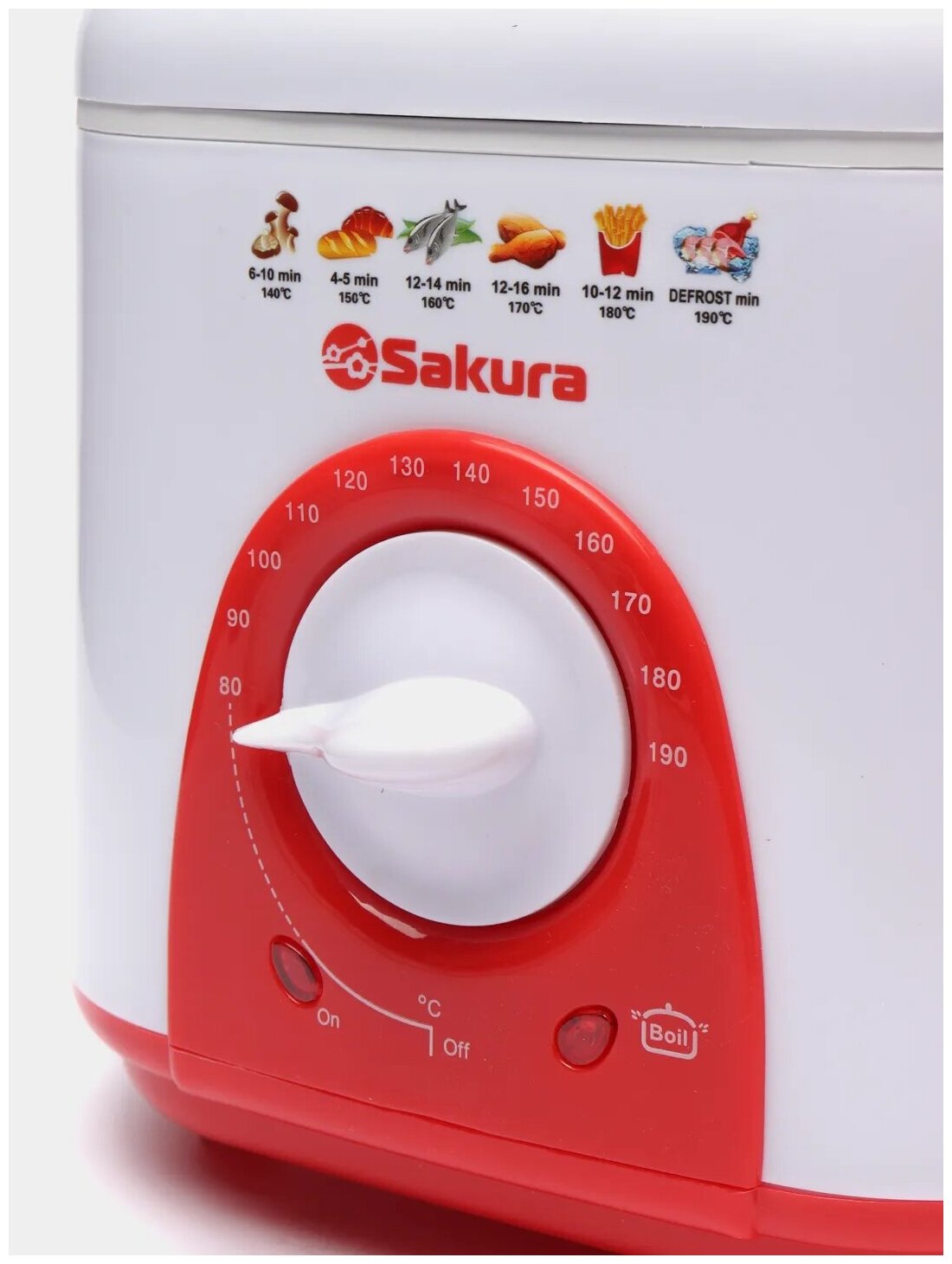 SAKURA Фритюрница Sakura SA-7654R, 950 Вт, 750 мл, антипригарное покрытие, фильтр, бело-красная