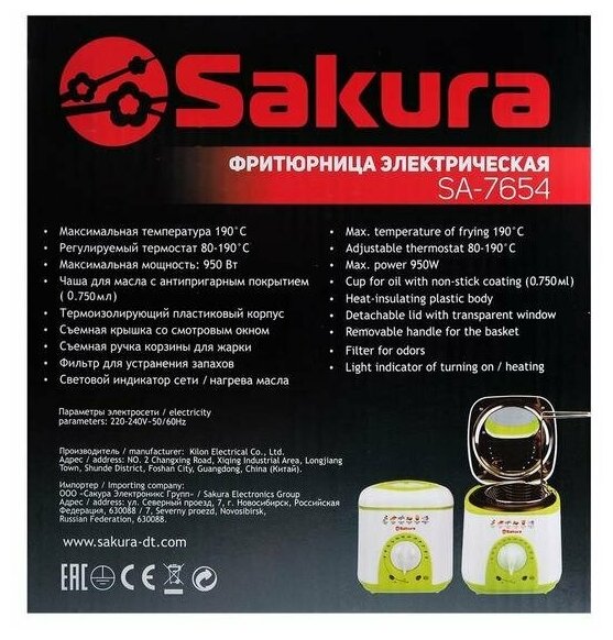 Фритюрница Сакура SA-7654R 0,75л 950Вт