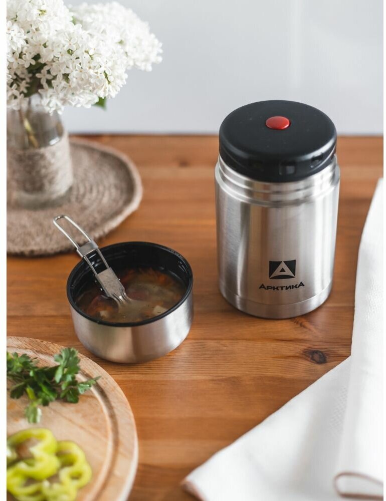 Термос для еды и супа Арктика 301-750А серебристый 0,75 литров со складной ложкой и чехлом в комплекте