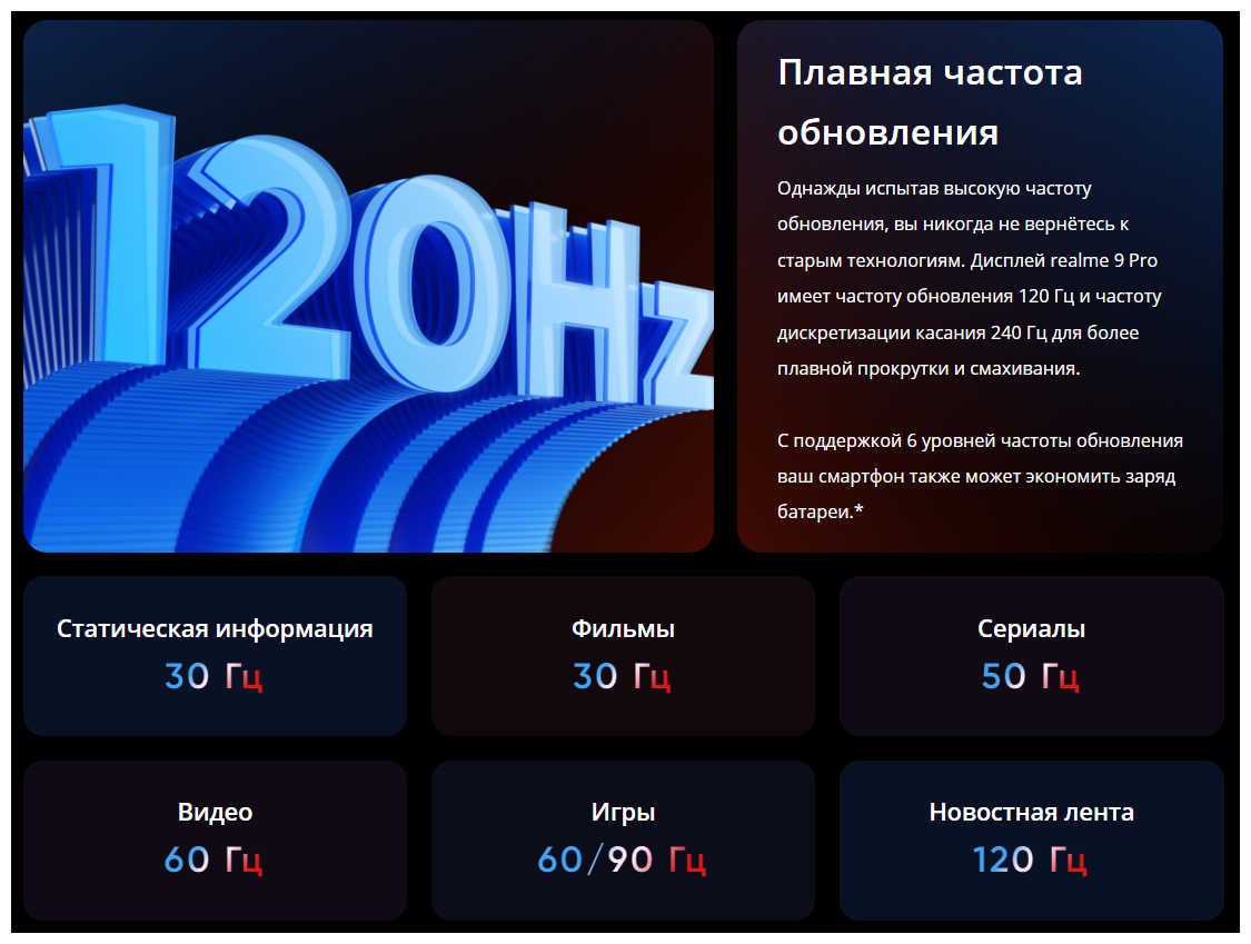 - 6.6 " / 2408х1080 (20:9) / 401 ppi / AMOLED / 120 Гц / HDR10+ / сенсорный экран