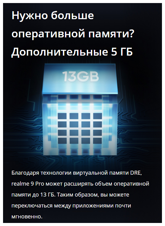Цена для г. Сысерть. Производительность со скоростью света, Realme 9 Pro оснащен процессором Qualcomm Snapdragon 695, настолько быстрым, что даже самые требовательные приложения работают без сбоев. Более того, он невероятно энергоэффективен благодаря 6-нанометровому техпроцессу. Нужно больше оперативной памяти? Дополнительные 5 ГБ Благодаря технологии виртуальной памяти DRE, realme 9 Pro может расширять объем оперативной памяти до 13 ГБ. Таким образом, вы можете переключаться между приложениями почти мгновенно. Магазины в городе Сысерть смотрите ниже