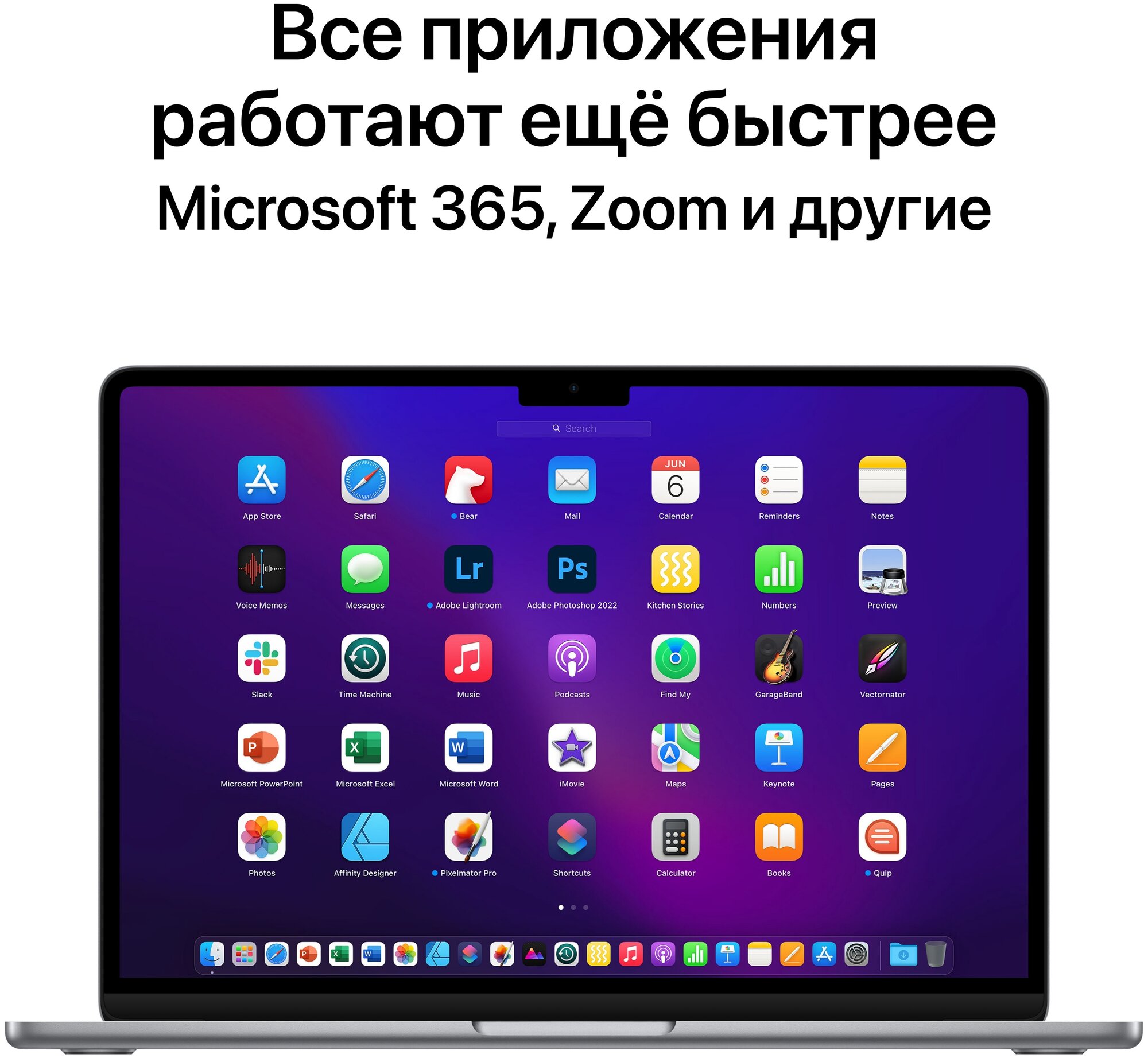 APPLE MacBook Air 13 (2022) (Русская / Английская раскладка клавиатуры) Space Grey MLXW3 (Apple M2/8192Mb/256Gb SSD/Wi-Fi/Bluetooth/Cam/13.6/2560x1664