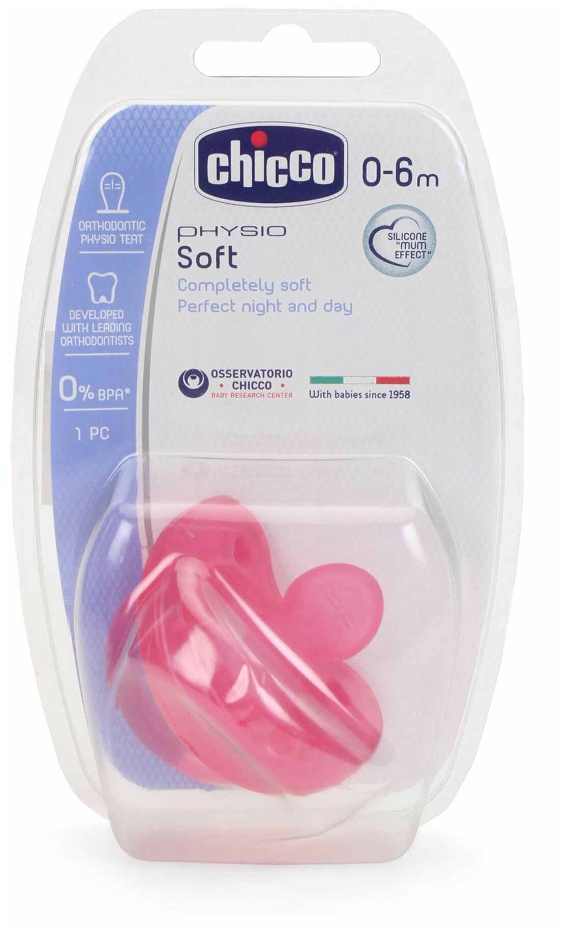 Chicco Пустышка Physio Soft 0-6 мес. силиконовая розовая 1 шт