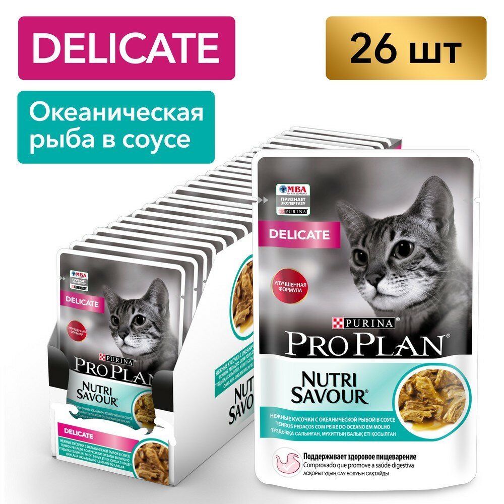 Влажный корм Pro Plan Nutri Savour для стерилизованных кошек и кастрированных котов, кусочки с океанической рыбой, в желе, Пауч, 85 гр. 26 шт.