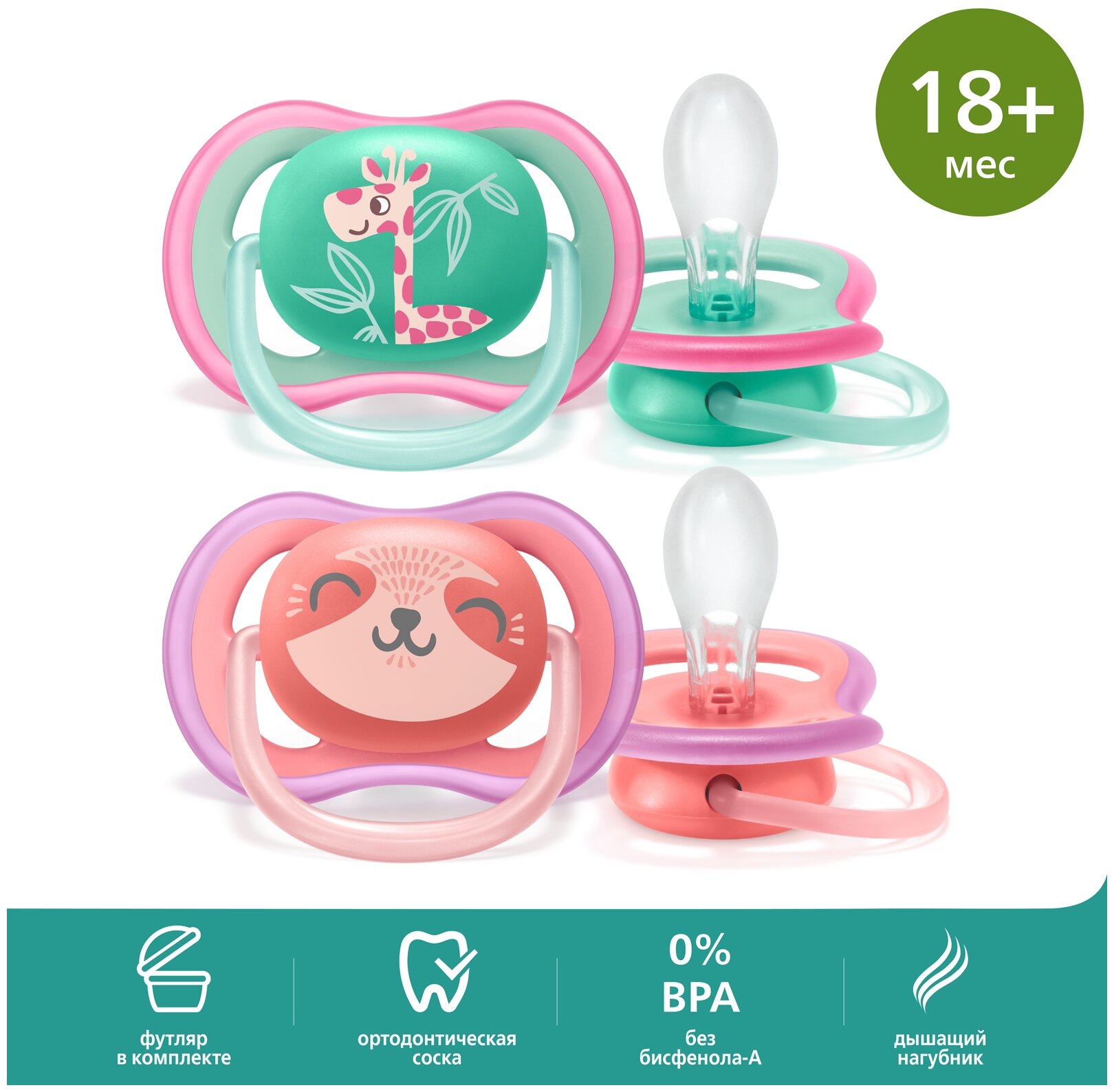 Детский товар Philips Пустышка 18+, Ultta Air, 2 шт, обезьянка и ленивец