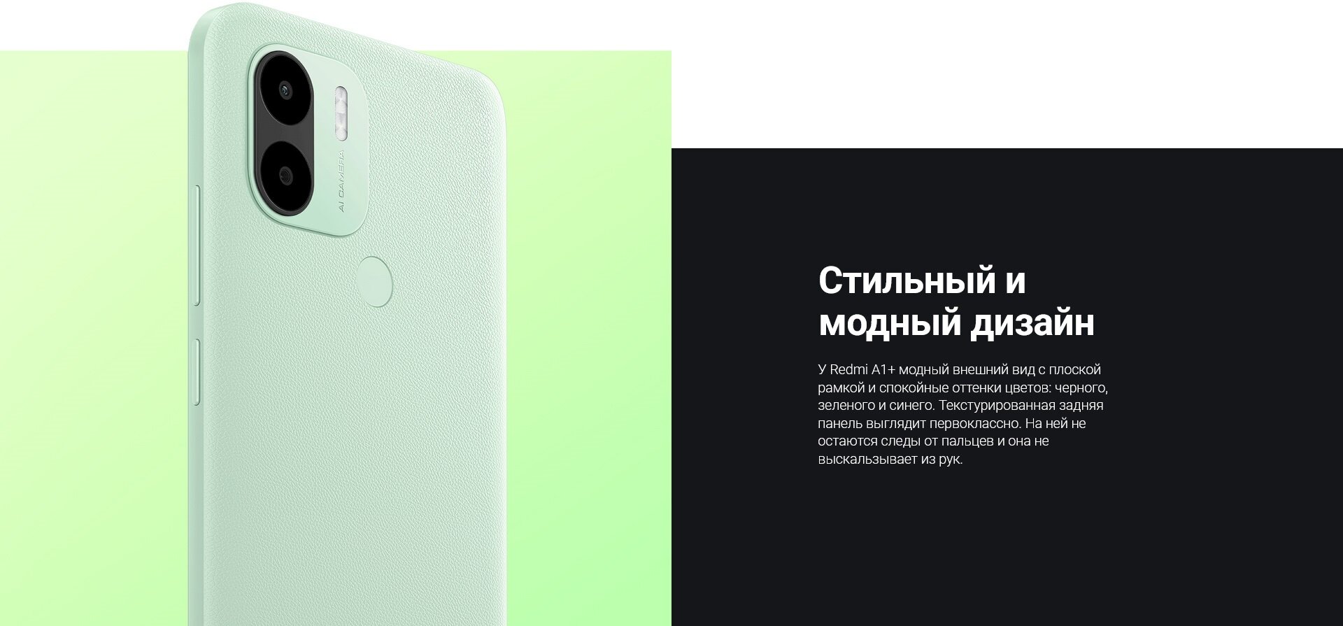 Смартфон Xiaomi Redmi A1+ 2/32 ГБ RU, Dual nano SIM, светло-зеленый