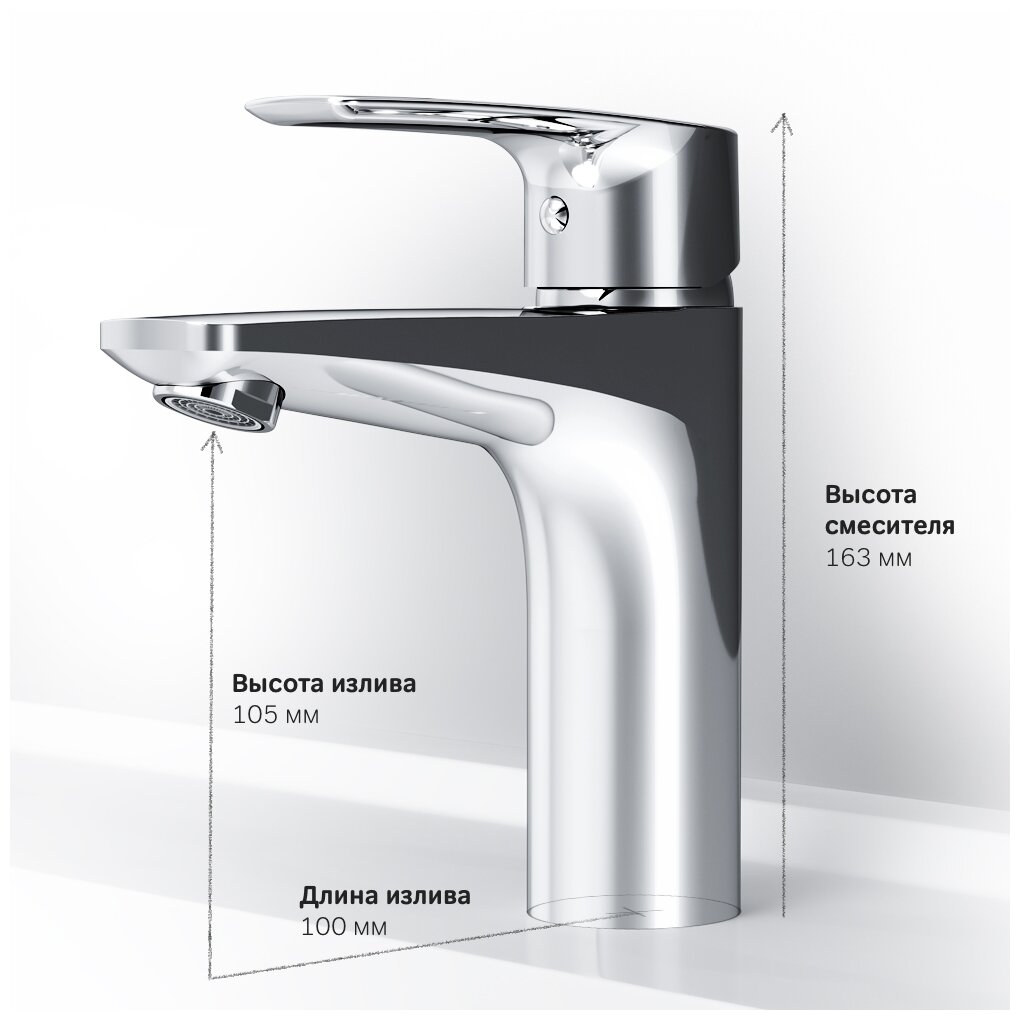 Смеситель для раковины AM.PM Gem хром, керамический картридж Soft Motion, латунь