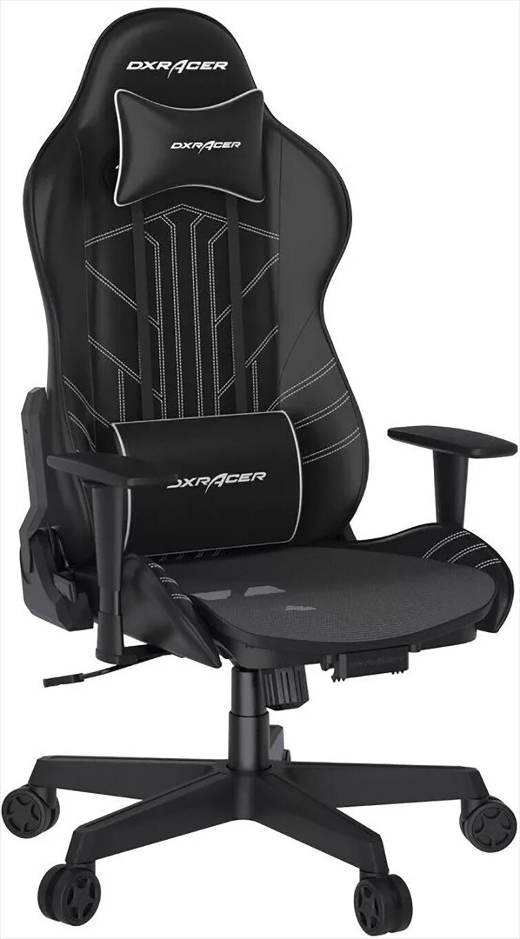 Компьютерное кресло DXRacer OH/G8000/WN для геймеров, обивка PU-кожа, макс. нагрузка 115 кг, подушки под голову и поясницу черный