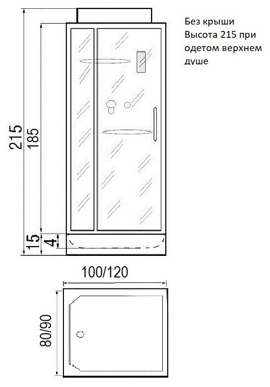 Душевая кабина 100x80x217 см River TANA Б/К 100/80