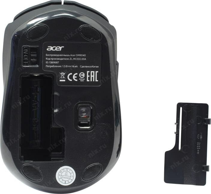 Мышь Acer OMR040, оптическая, беспроводная, USB, черный [zl.mceee.00a]