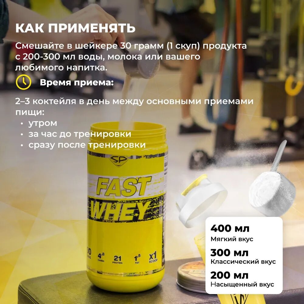 Протеин сывороточный STEELPOWER / Протеиновый коктейль для похудения / Сывороточный протеин FAST WHEY, 900 гр, Банан