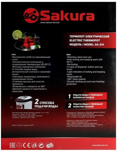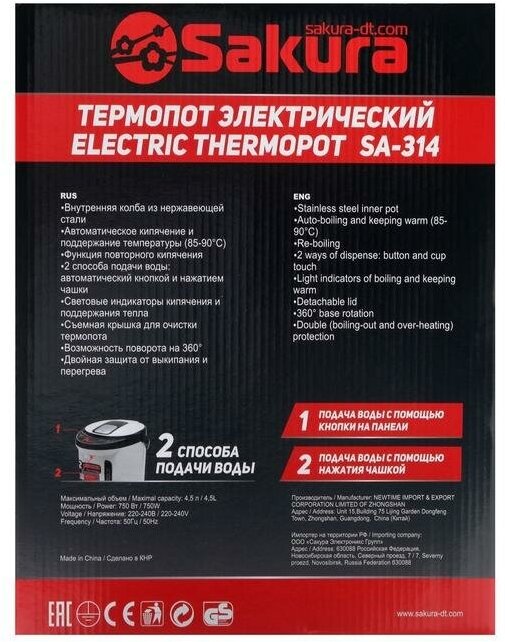 Термопот SAKURA SA- 314 BS (750 Вт, 4.5 л), (6)