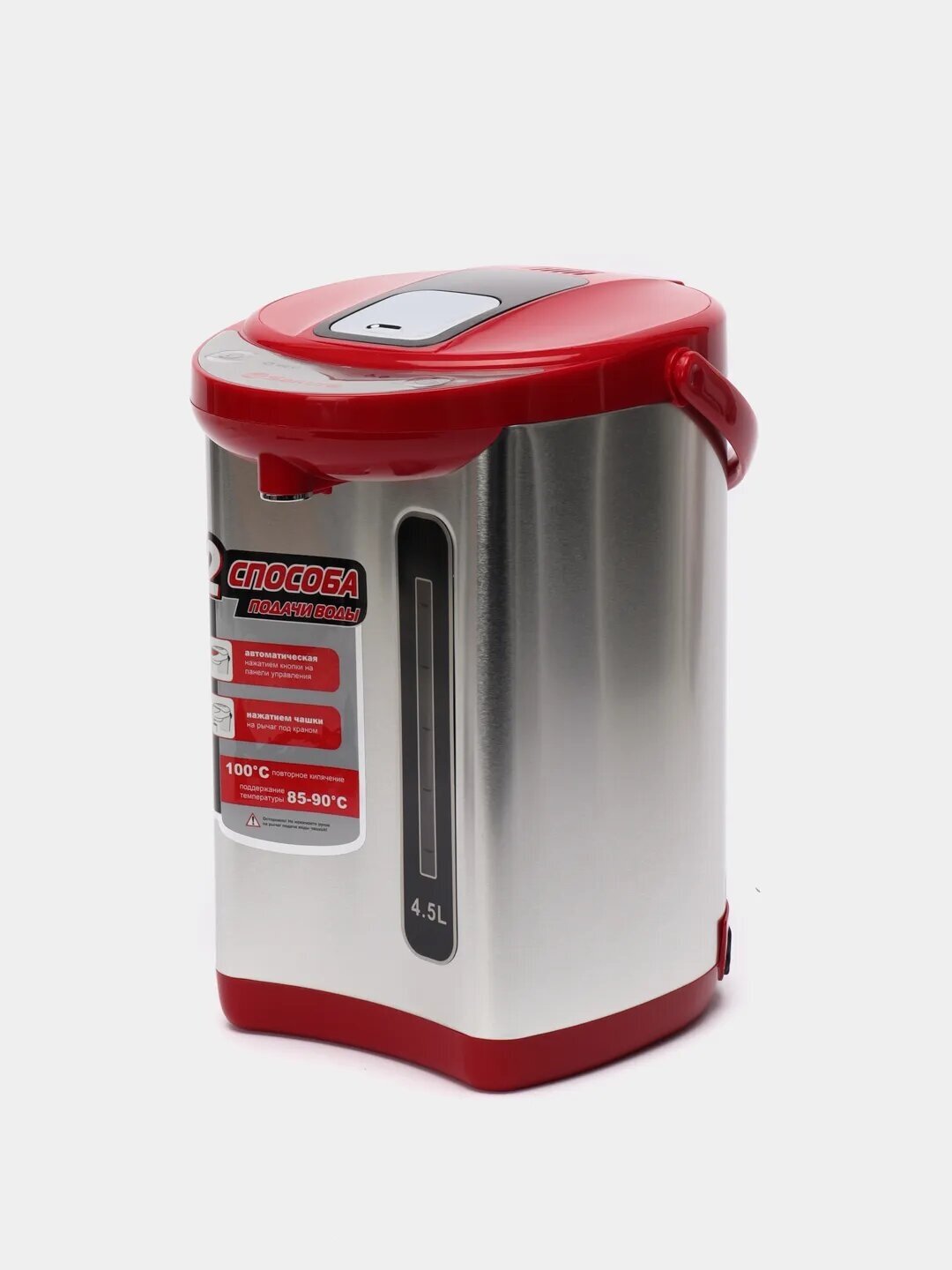 Цена для г. Сысерть. Описание: Чайник-термос с функцией кипячения и поддержания температуры на уровне 85-90С. Двойная защита от перегрева и включения без воды Два способа подачи воды. Поворот основания на 360. Световые индикаторы режима работы. Основные характеристики: Объем: 4,5 л Мощность: 750 Вт Тип управления: кнопочный Повторное кипячение: есть Поддержание температуры воды: 85-90С Температурные режимы: нет Способ подачи воды: автоматический кнопкой, нажатием чашки Автоматическая очистка: нет Отсрочка запуска: нет Режим. Магазины в городе Сысерть смотрите ниже