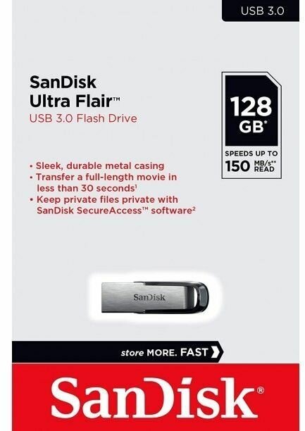 USB флешка Sandisk Ultra Flair 128Gb USB 3.0 (150/25 Mb/s)