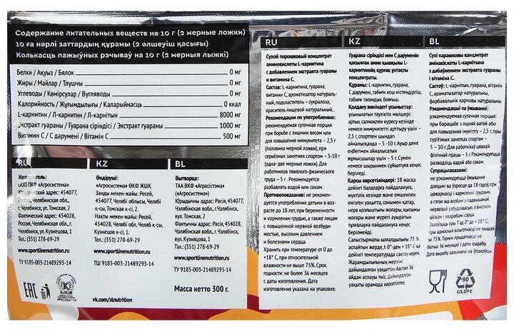 Sportline Nutrition L- карнитин SportLine L-Carnitine, клубника, 300 гр. + гуарана и витамин С сжигатель жира в Сысерть