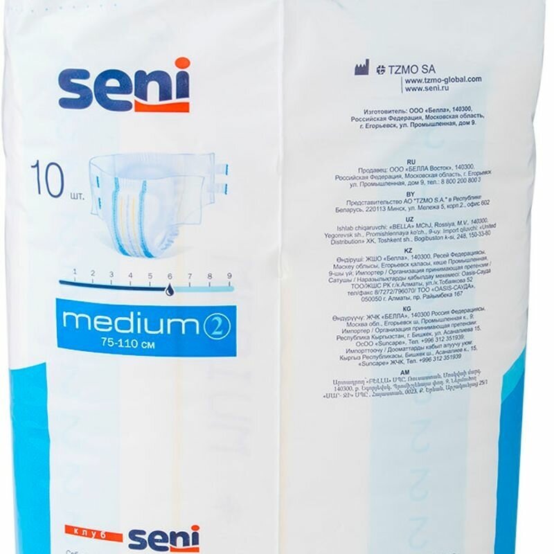 Подгузники (памперсы) для взрослых Super Seni Medium (средние) (обхват 75-110 см), 10 шт