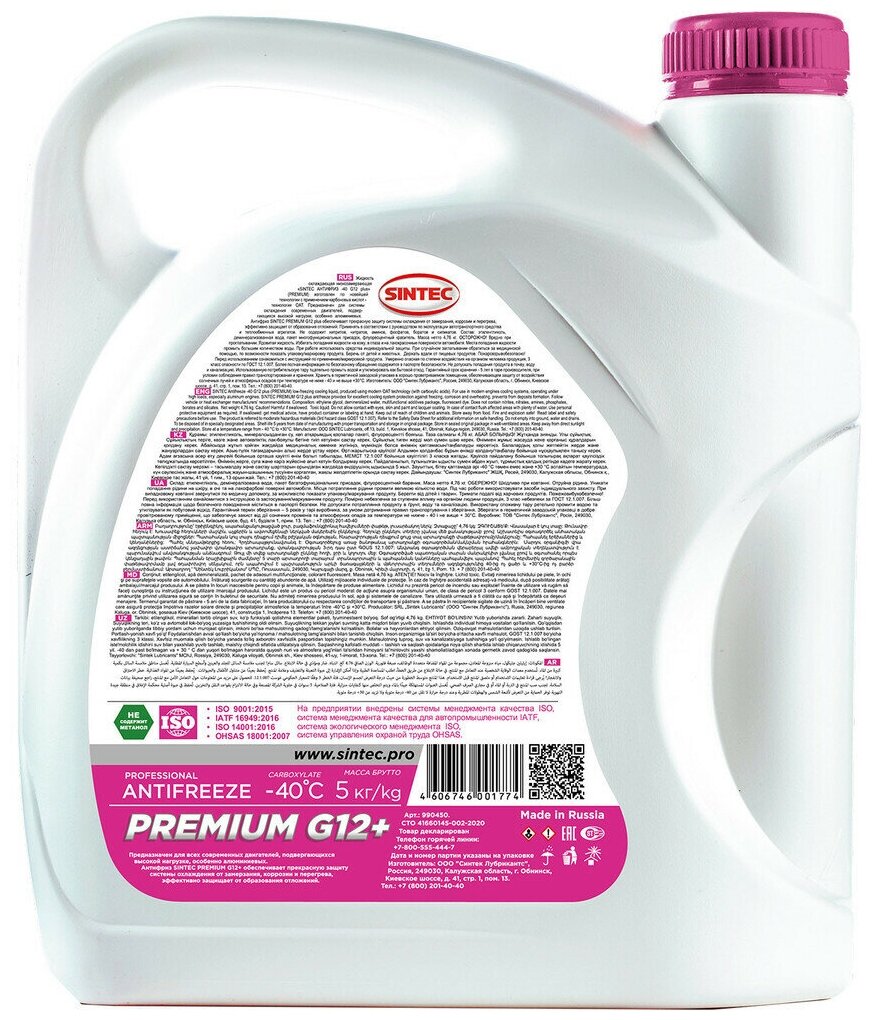 SINTEC Sintec ANTIFREEZE PREMIUM G12 + 5кг 990450