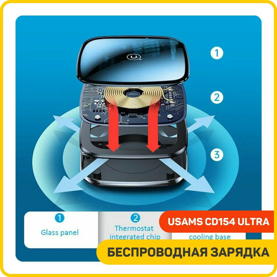 USAMS Беспроводное зарядное устройство Usams CD154 Ultra, 2 А, черный зарядное устройство в Сысерть