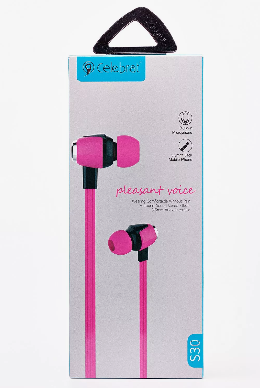 Celebrat Наушники проводные внутриканальные вакуумные Celebrat S30 Розовые наушники в Сысерть