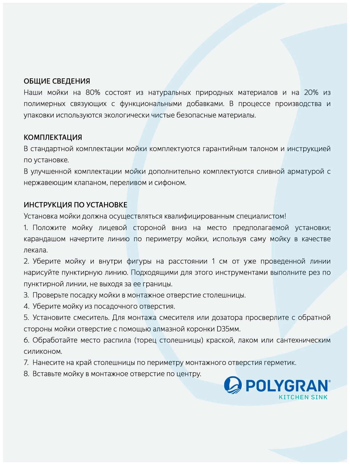 Polygran ARGO-560, мойка, мрамор, черный 16