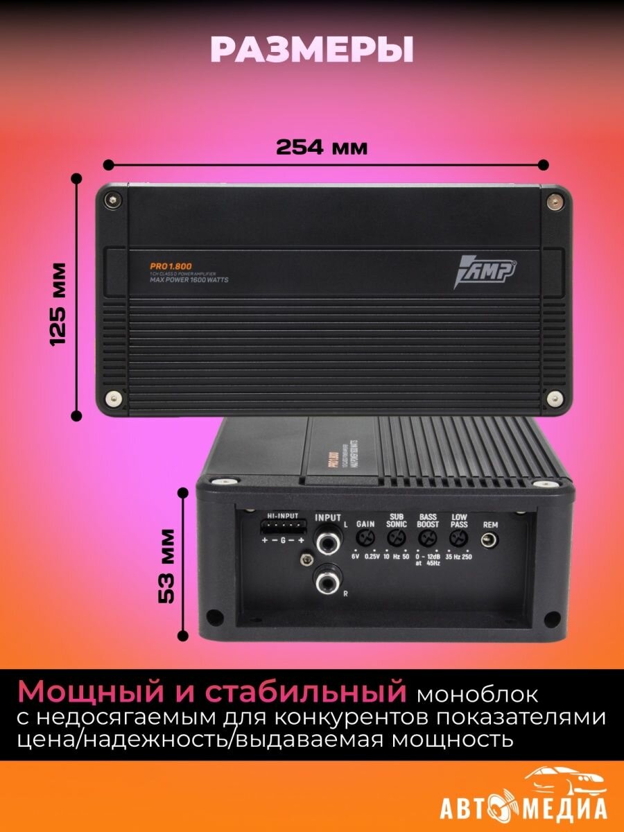 Усилитель AMP PRO 1.800 / Усилитель автомобильный / Моноблок /