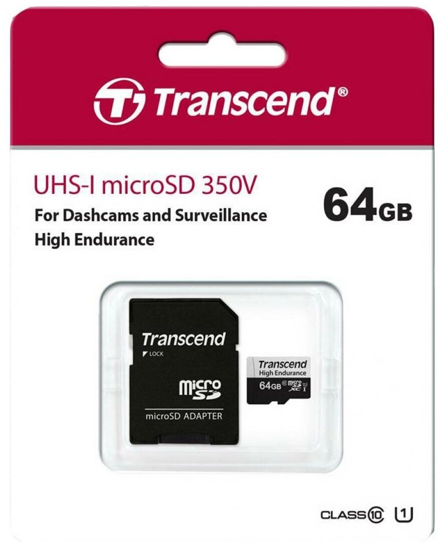 Карта памяти Transcend MicroSDXC High Endurance 350V 64 Гб UHS-I Class 1 (U1), Class 10 TS64GUSD350V