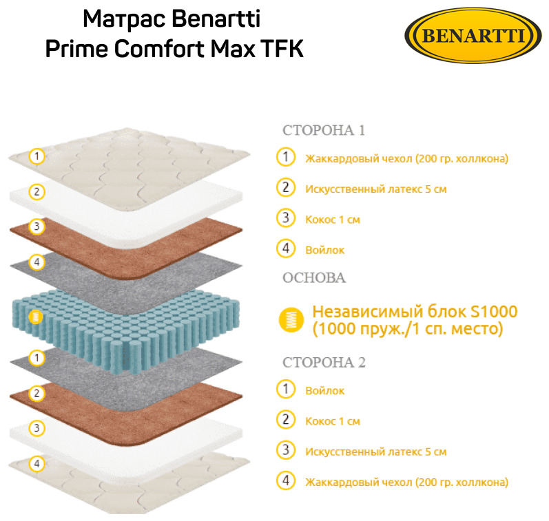 Матрас Benartti Prime Comfort Max TFK 180х200, стандартный